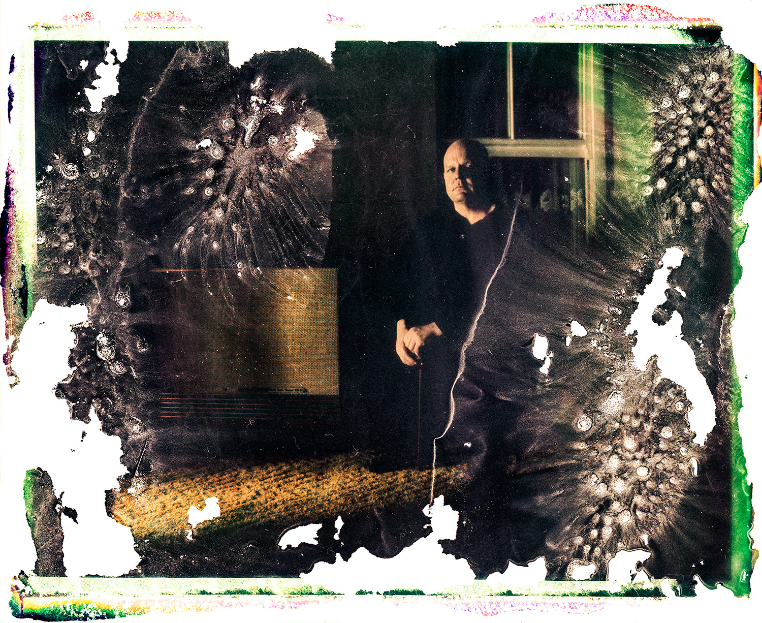 This is an ongoing series of portraits shot using old instant film (Fuji FP100C, much the same as the old Polaroid peel-apart films). Bleach is used to recover the negative while leaving traces of the dissolved dye behind behind to influence the image. This adds a visceral sense as the swirls and imperfections of the process bleed into world of the photographed subject.